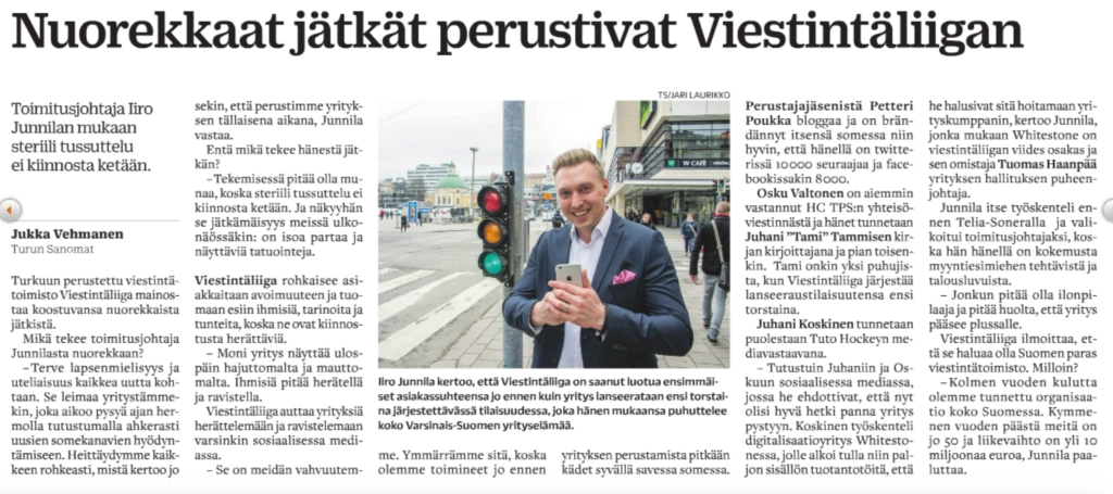 Onneksi saavutimme tällä takakarvauksella yksimielisyyden ja hakemus päädyttiin panemaan sisään nimellä Viestintäliiga Oy. Pari kuukautta sen jälkeen ahkeroitiin tuotteistusta ja verkkosivuja, tehtiin jo myyntiä taustalla täyttä häkää.